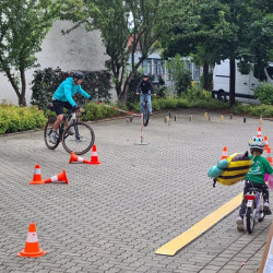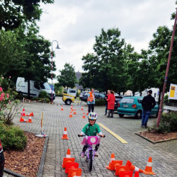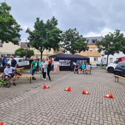 Hier hatte der Regen mittlerweile aufgehört und es fanden sich einige Kinder mit Eltern ein um den Fahrradparcours zu bewältigen. Währenddessen trafen auch die Old- und Youngtimmer ein.